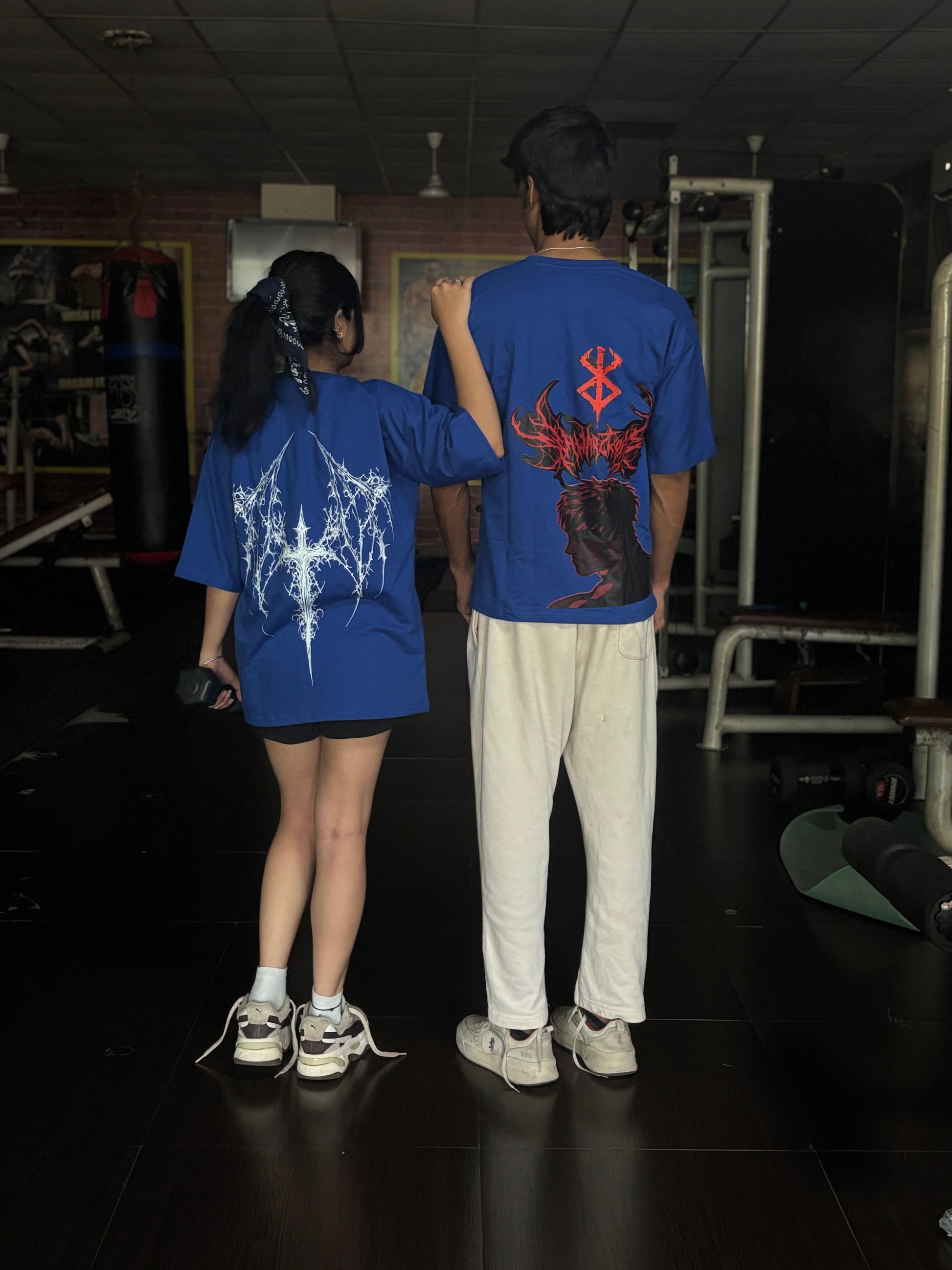 This electric blue oversized tee is drippin’ with edge. The sharp white thorn-graphic hits different — front and back — like angel wings gone metal. Crafted from ultra-soft, high-grade cotton, it’s comfy enough to binge-watch and bold enough to headline your next fit.